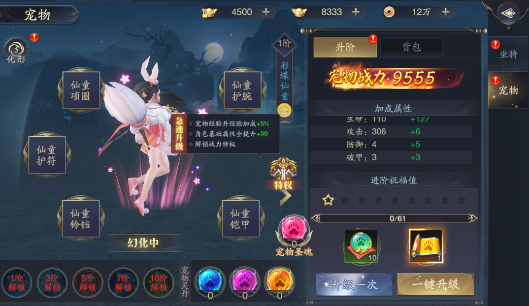● 秘境孵化:参与“灵兽秘境”获取高级宠物蛋,孵化需对应灵气材料。